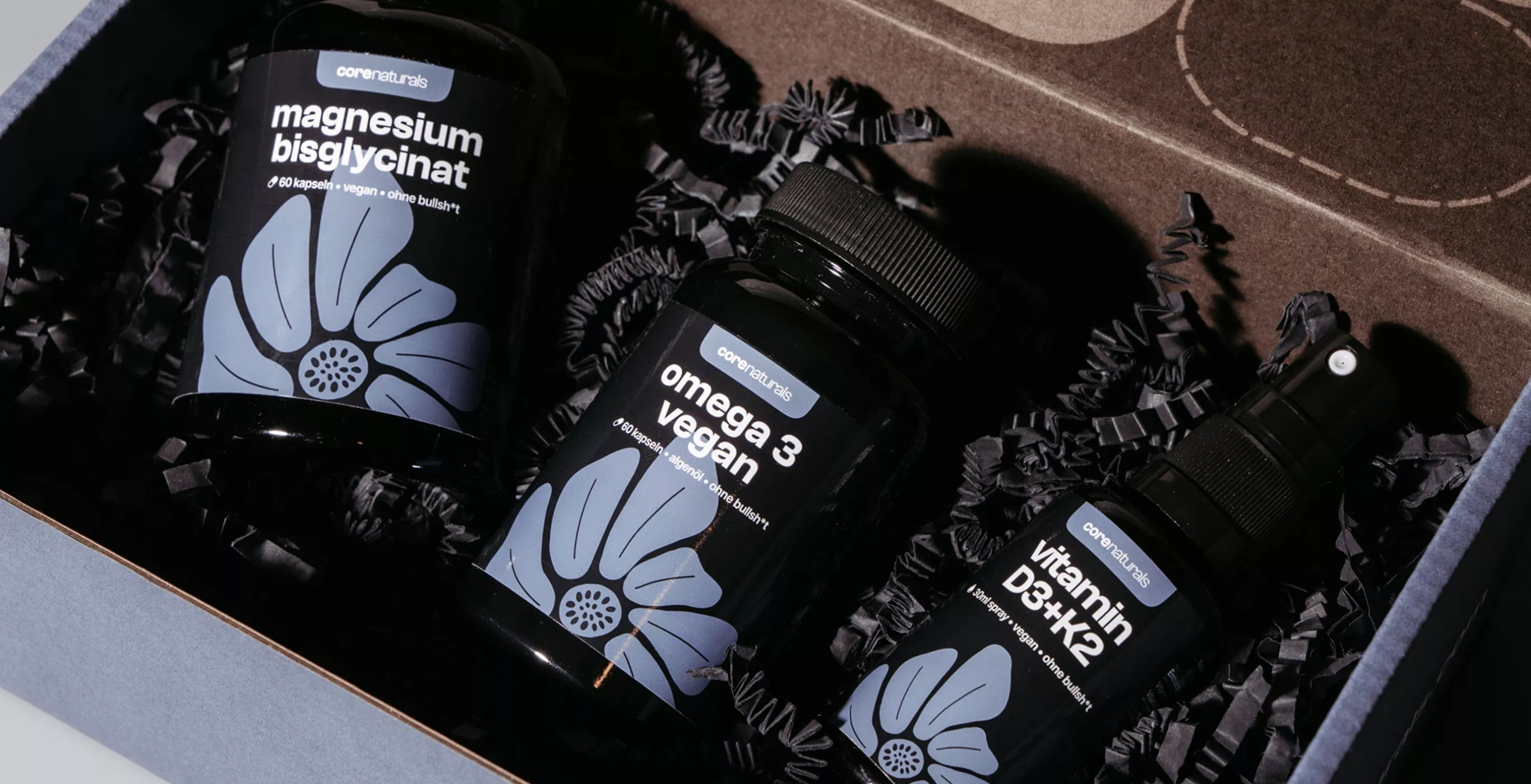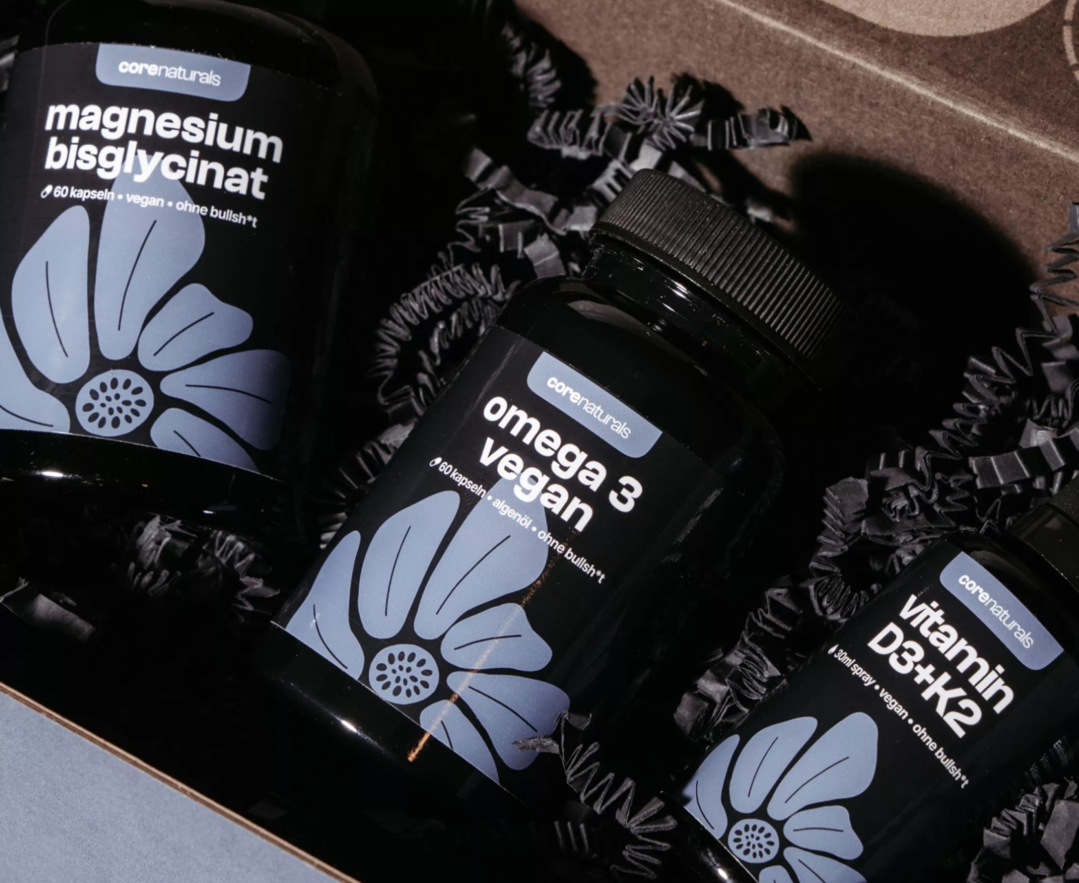 - Magnesium, Omega-3 und Vitamin D3+K2 kombiniert